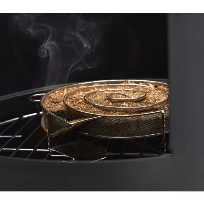 Très pratique, il vous permet de diffuser efficacement de l’essence de sciure de bois dans votre barbecue grâce à un serpentin doté de grillages. Vos mets se retrouveront ainsi impregnés d’un délicieux goût de bois.